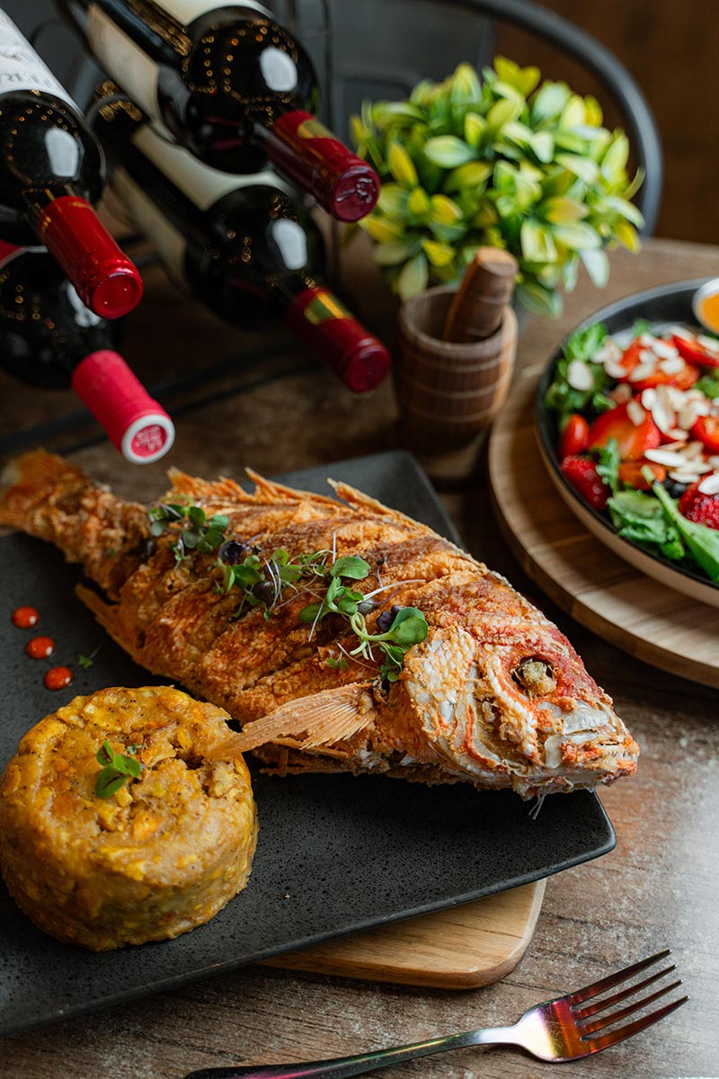 🔸 Plato Fuerte: #Chillo Frito relleno de #Carrucho y #Camarones en crema de ajo 😋